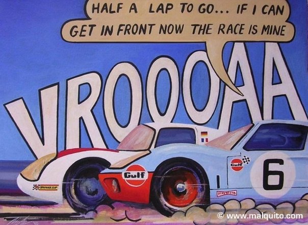 Ford GT40 & Porsche 908, Le Mans 1969Acrylique sur papier 300grm Image: 26 x 35 cm, Papier: 40 x 50 cmRef. 0421
